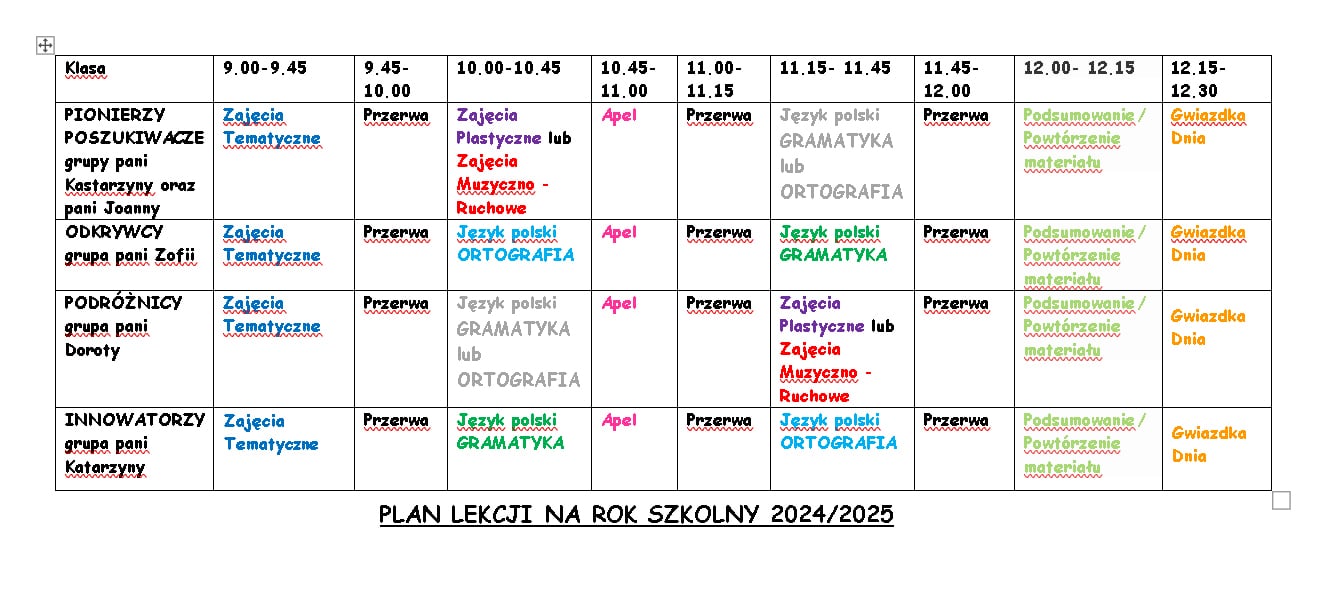 Plan lekcji na rok szkolny 2024/2025